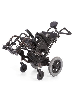 Tilt-in-Space Pediatric wheelchairs tilt the seat backward while maintaining hip